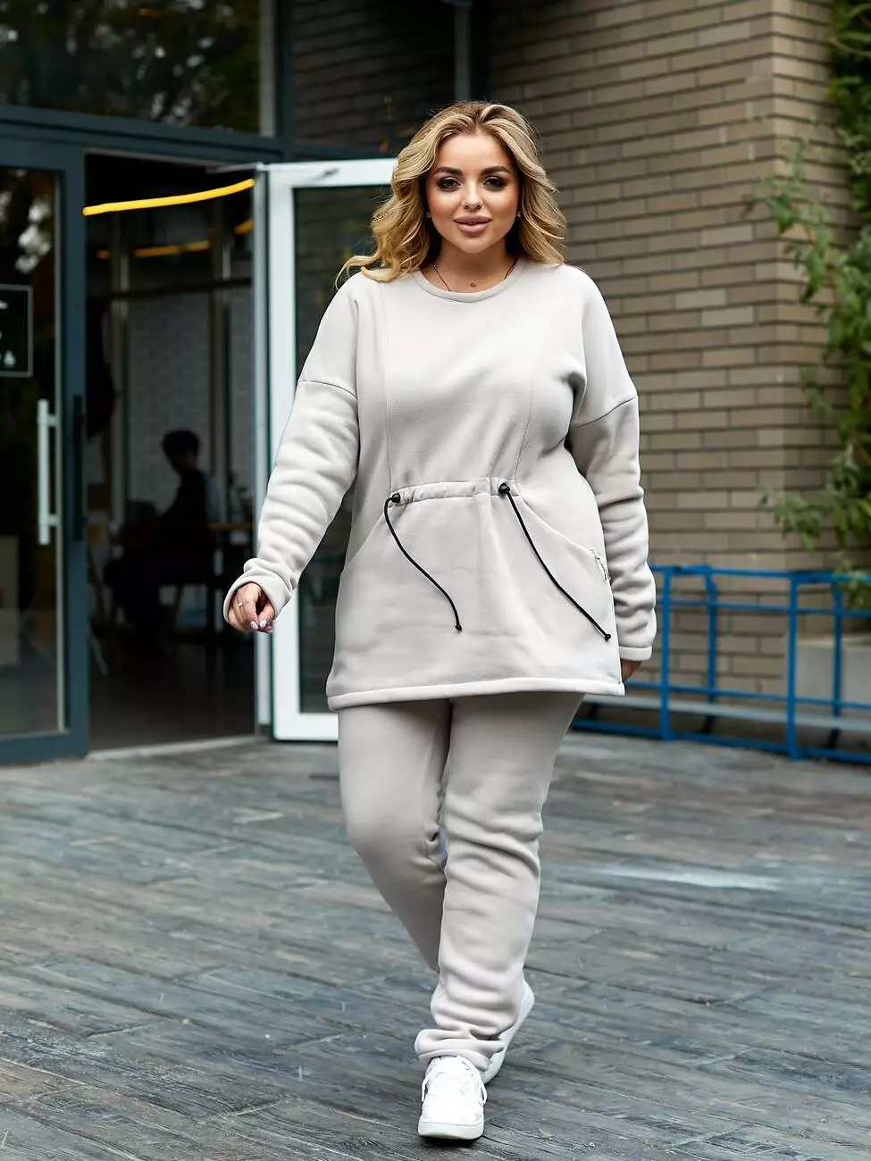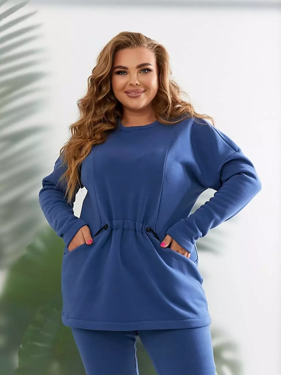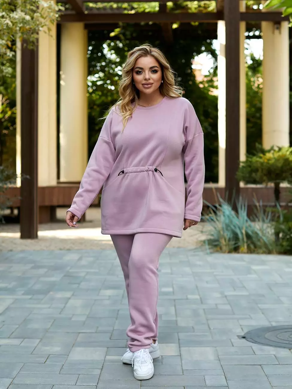 Жіночий прогулянковий костюм, туніка і штани, синій, пудра, бежевий, 48/50, 52/54, 56/58 розміри