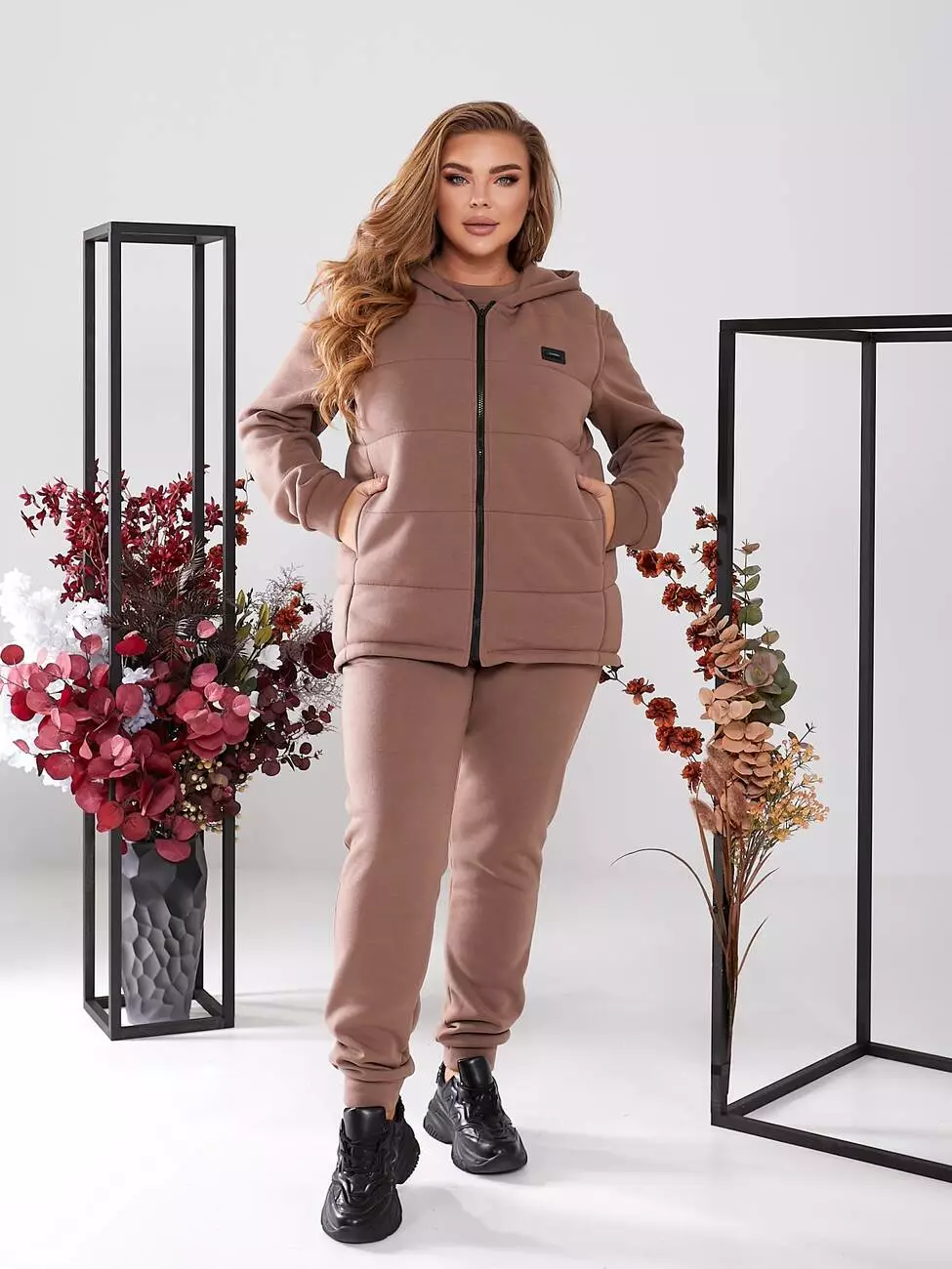 Жіночий спортивний костюм, світшот штани жилетка, графіт, чорний, бежевий, мокко, джинс, 48/50, 52/54, 56/58, 60/62 розміри