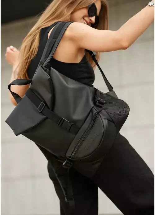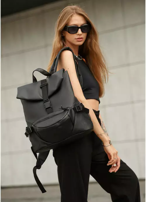 Спереди рюкзака есть два вместительных кармана и один с задней