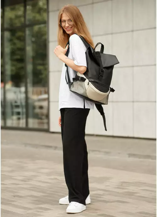 Спереди рюкзака есть два вместительных кармана и один с задней