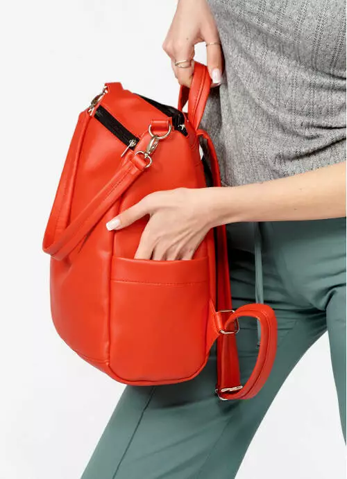Спереди рюкзака есть два вместительных кармана и один с задней