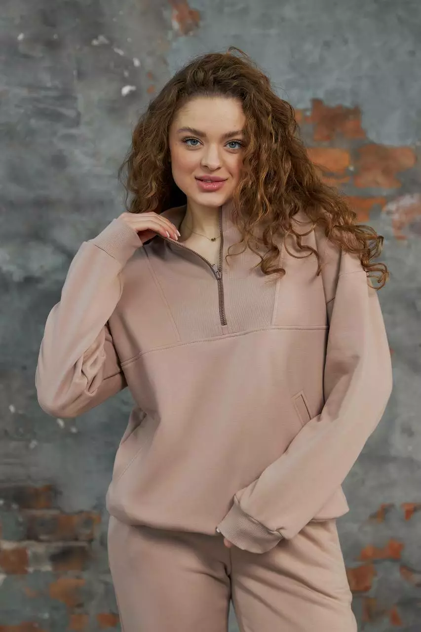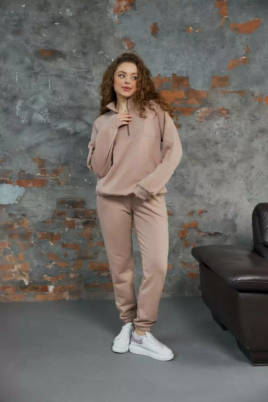 кофту-бомбер на замку з коміром і штани з широкою прошитою резинкою