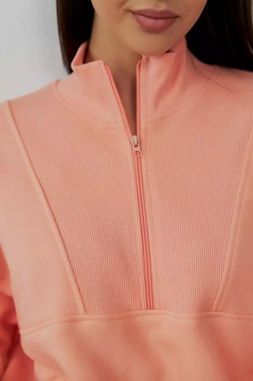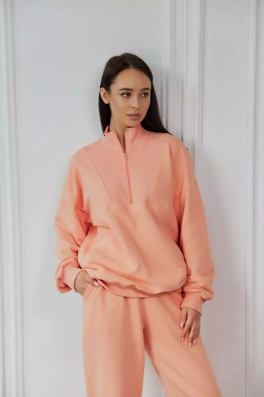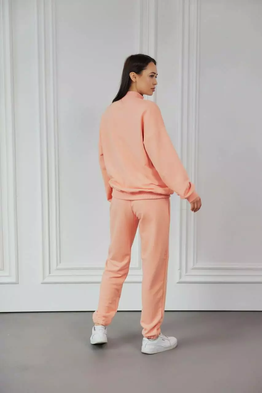 кофту-бомбер на замку з коміром і штани з широкою прошитою резинкою