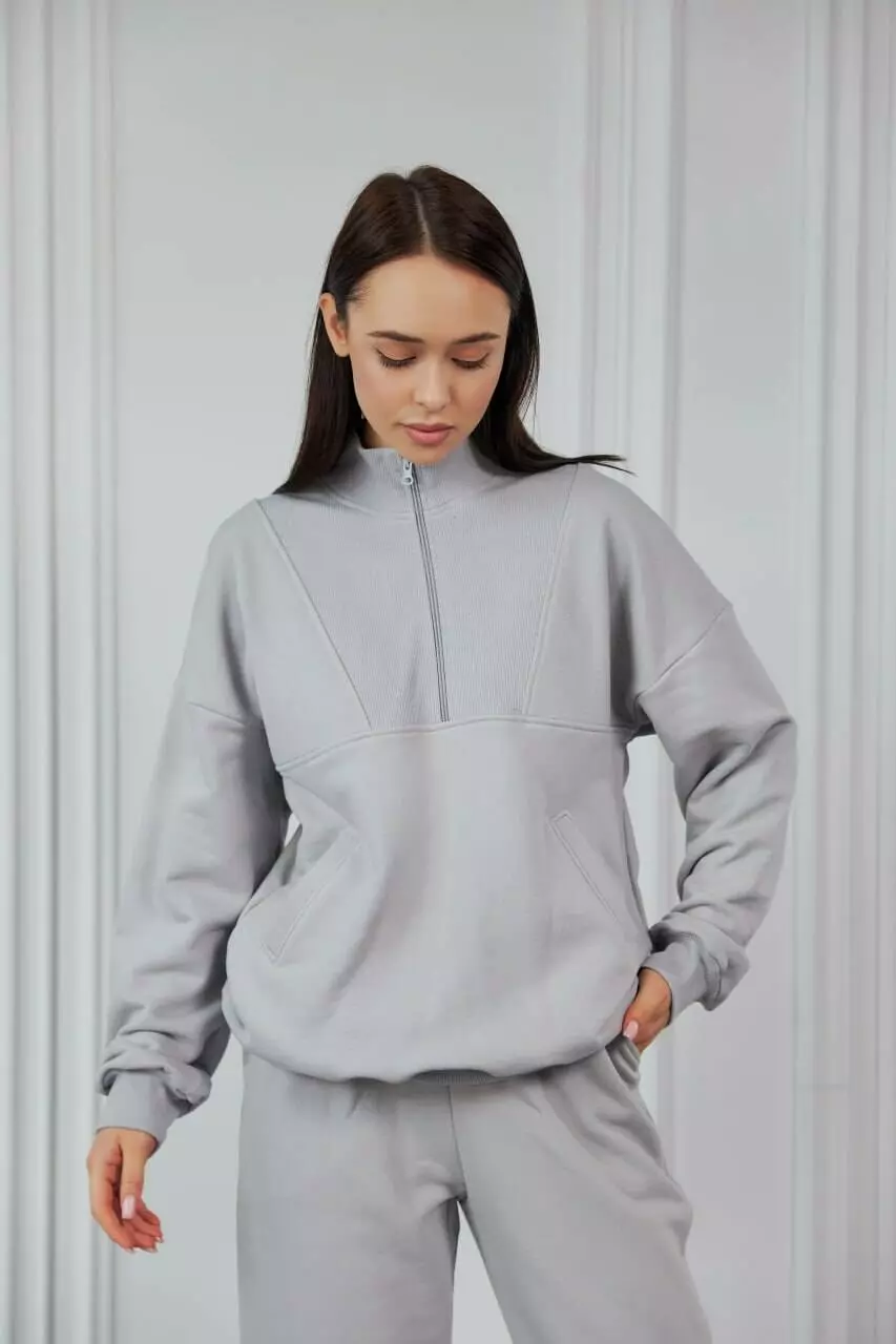 кофту-бомбер на замку з коміром і штани з широкою прошитою резинкою