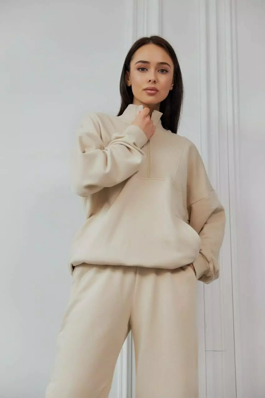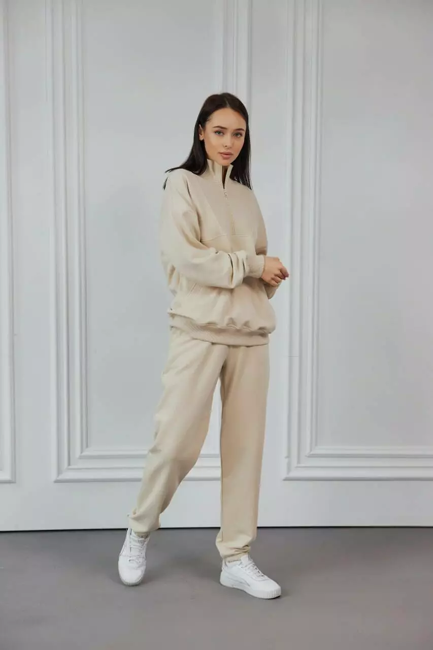 кофту-бомбер на замку з коміром і штани з широкою прошитою резинкою