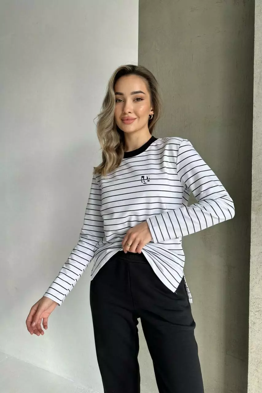 Класична бретонка в контрастну смужку – універсальний стиль для прохолодної погоди Ця класична бретонка в контрастну смужку поєднує у собі естетику базового гардеробу та сучасний комфорт. Вона може бути як приталеною розмір у розмір, так і вільною у стилі oversize, надаючи свободу вибору відповідно до вашого образу. Завдяки щільності тканини, бретонка формує чистий, об’ємний силует, виглядаючи акуратно та елегантно. Виготовлена з двонитки, ця модель ідеально підходить для прохолодної весни, осені або як шар для зимових образів. Комфортний матеріал зберігає тепло та робить бретонку практичним вибором для різних сезонів. Особливості: Матеріал: двонитка, що забезпечує тепло та комфорт Вибір посадки: розмір у розмір або oversize Контрастна смужка для стильного акценту Ідеальна для весни, осені та зимових образів Ця універсальна бретонка стане незамінною частиною вашого гардеробу, поєднуючи стильний вигляд та практичність на кожен день.