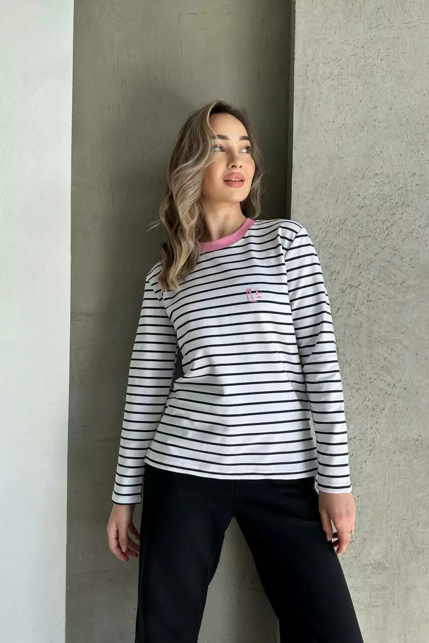 Жіночий світшот у чорно-білу смужку М153.2 з рожевою горловиною S