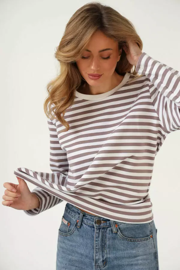 Жіночий світшот у стилі тільняшки з бавовни German Volf Бежева смужка L(46) 24023