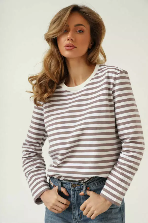 Жіночий світшот у стилі тільняшки з бавовни German Volf Бежева смужка S(42) 24023