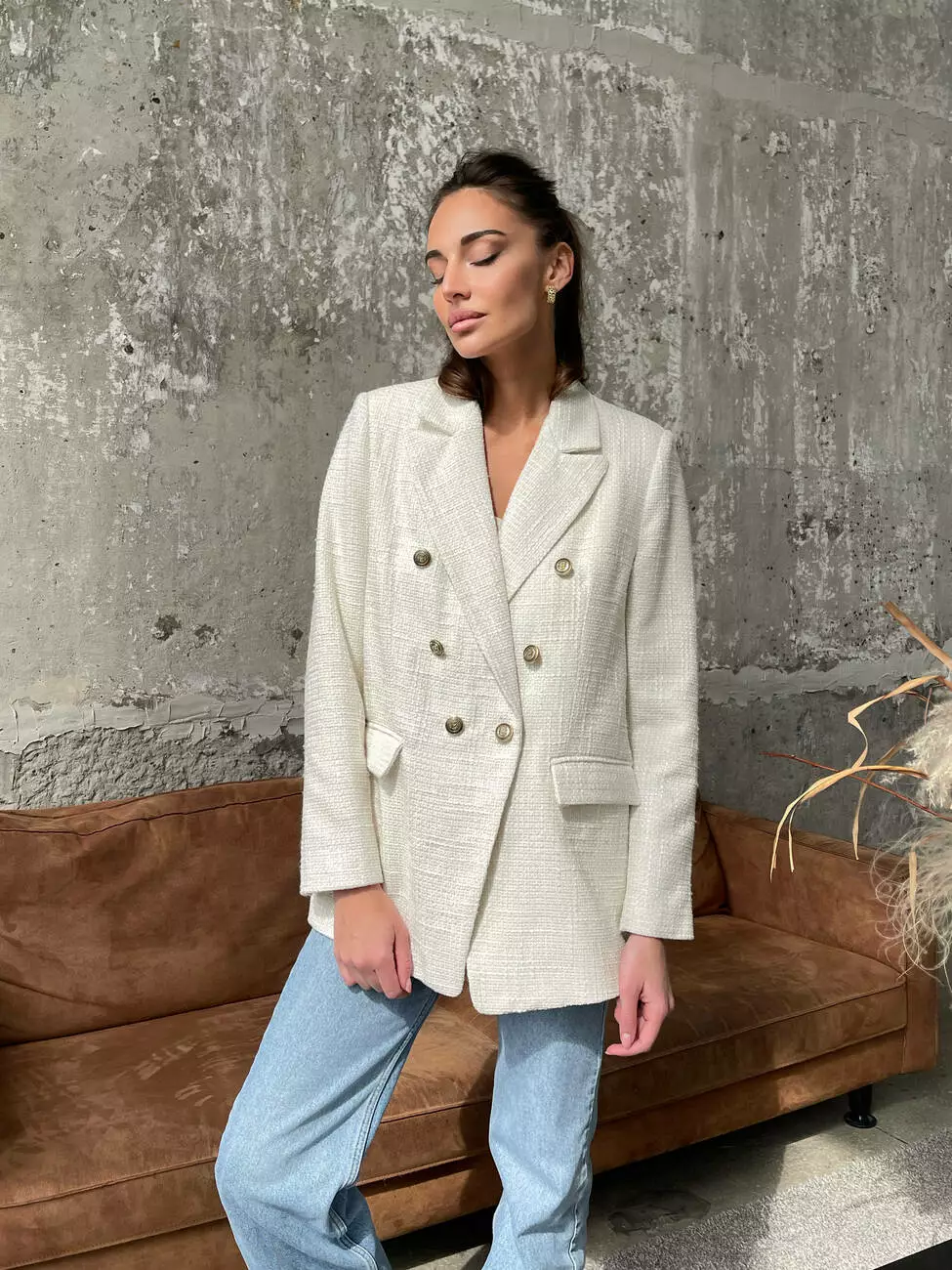 Твідовий двобортний піджак виконаний з якісного твіду Шанель, який чудово тримає форму і приємний на дотик, має шовкову підкладку для довговічності та комфорту.