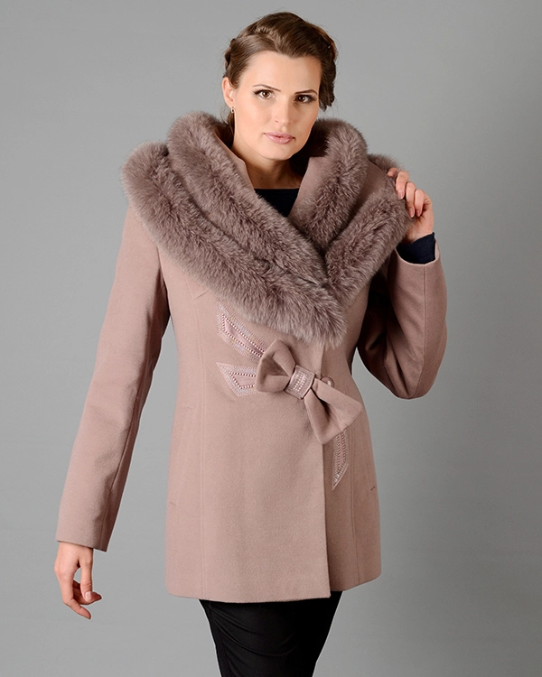 - поливискоза. Пальто на пуговицах, украшено бантом с паетками.