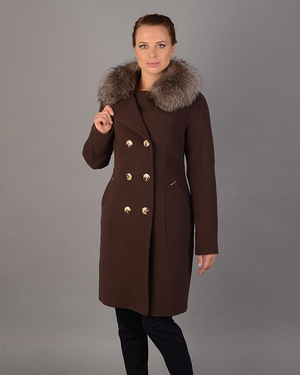 Воротник из натурального меха песца, съемный. Пальто прителенное,