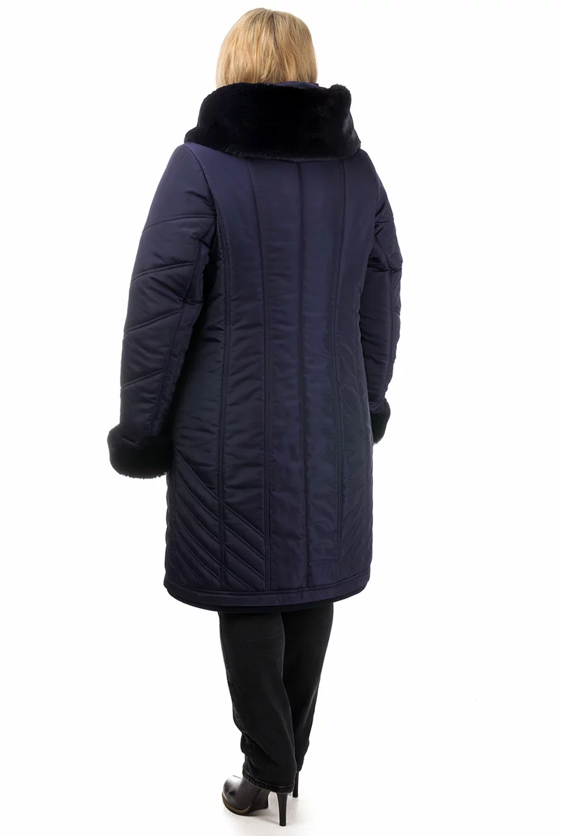 Зимнее утеплённое женское пальто "Татьяна" из приятной плащевки сохраняет тепло даже при сильных морозах. Объемный капюшон, отделанный черным мехом с кнопками надежно защитит от сильного ветра и дождя. Это зимнее пальто визуально сильно стройнит и скрадывает полноту за счёт вертикальных отстрочек по спинке, передней части. А также декоративной планке, которая полностью прикрывает змейку.