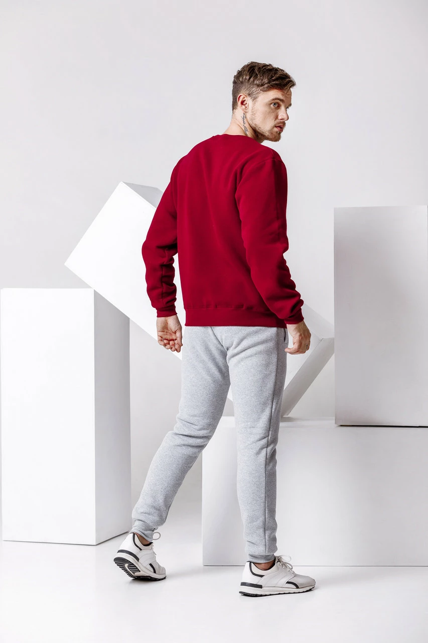 Зимний мужской спортивный костюм - черный теплый свитшот и бордовые теплые штаны / ОСЕНЬ-ЗИМА