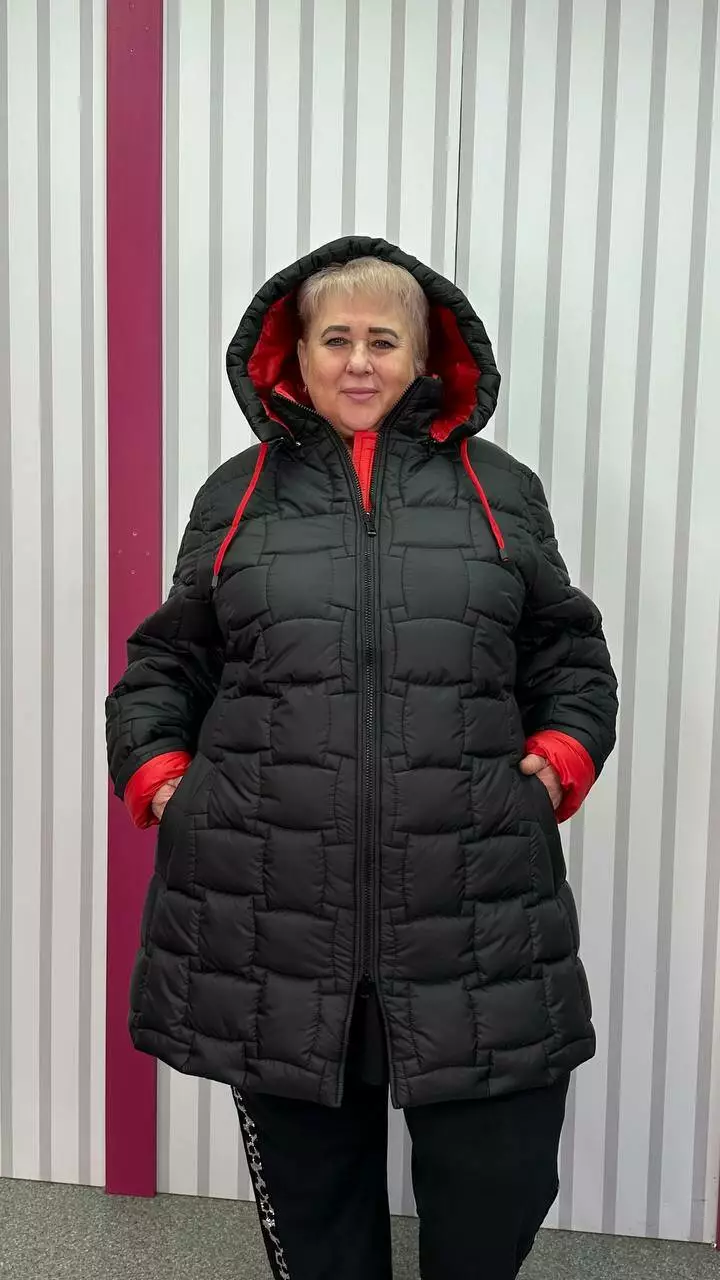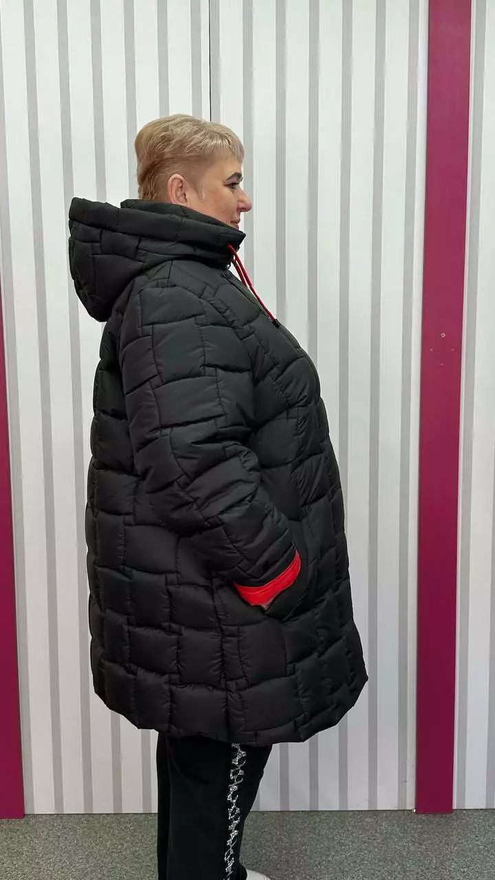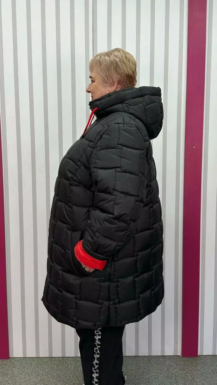 66-68 об'єм груді до 142 об'єм талії до 150 об'єм стегон до 162 довжина виробу 90 довжина рукава 73-65 ширина рукава 58