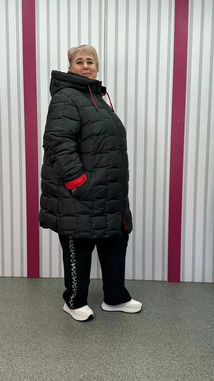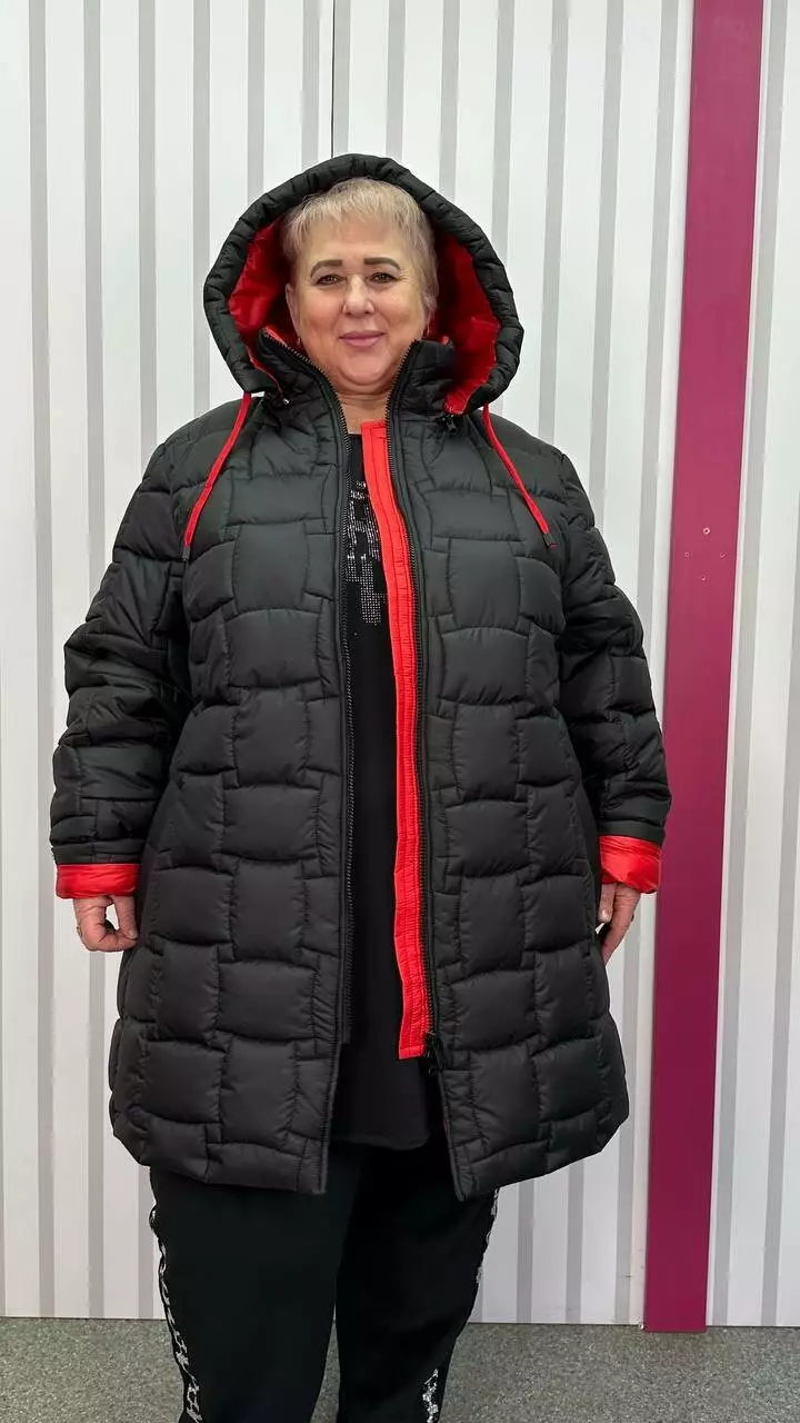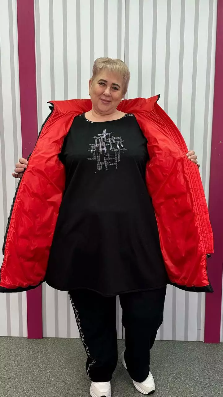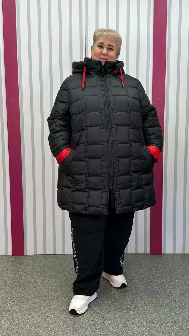 66-68 об'єм груді до 142 об'єм талії до 150 об'єм стегон до 162 довжина виробу 90 довжина рукава 73-65 ширина рукава 58