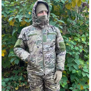 Бушлат-куртка пряма і подовжена, застібається на блискавку. Пошита із зносостійкого, водо- та вітровідштовхувального матеріалу SOFT SHELL. Високий комір-стійка на застібці Velcro (липучка). Рукава з манжетами на резинці. Зручний капюшон, не знімається. 4 кишені (1 внутрішня, 2 з боків нижче талії, 1 на рукаві). Є липучки для шевронів та інших знаків.