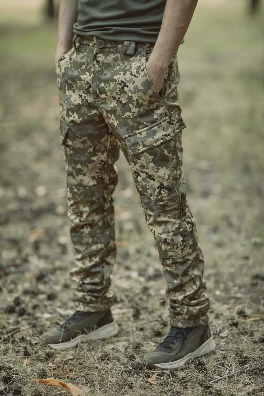 Також в підколінну зону, вшита гумка для щільного прилягання штанин до тіла.
