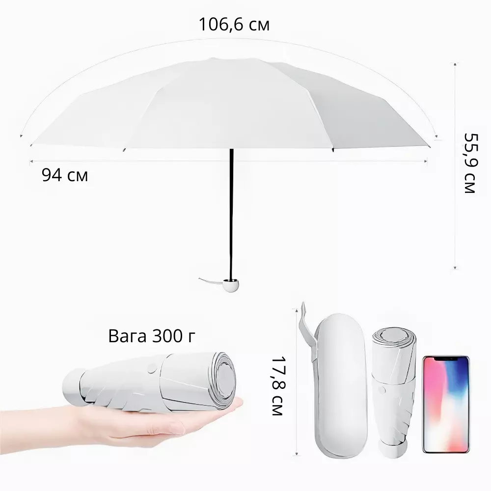 Эта компактная мини-парасолька с футляром — ваш идеальный спутник в