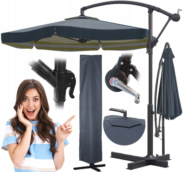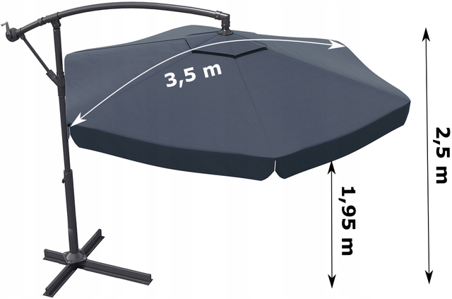 - размеры: высота 250 см; диаметр козырька: около 3 м, диаметр по
