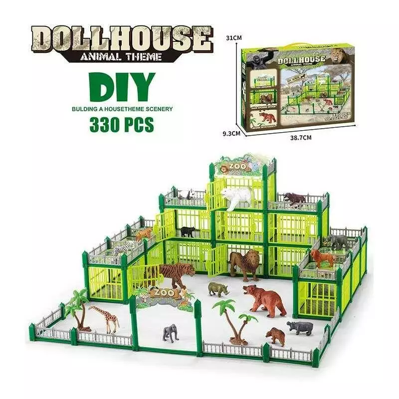 Зоопарк 2025-8 A (12) 330 деталей, 4 великі тварини: 11 см, 12 маленьких тваринок:5 см, тварини гумові, аксесуари, в коробці