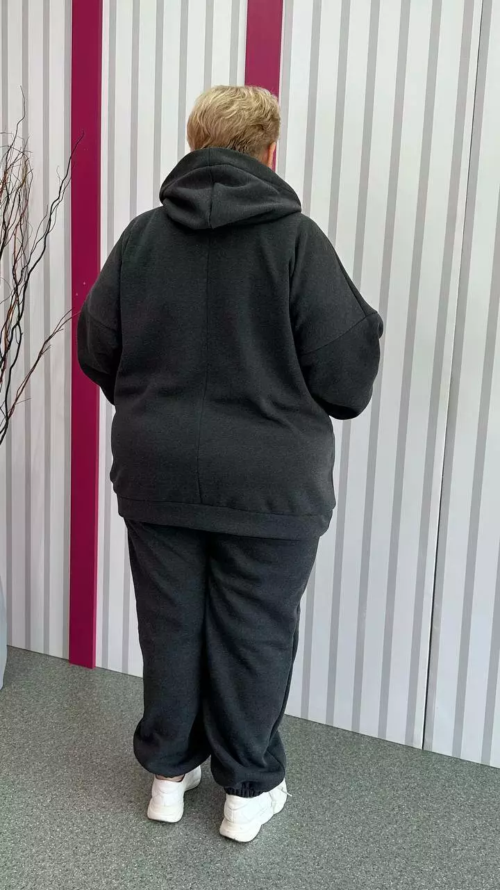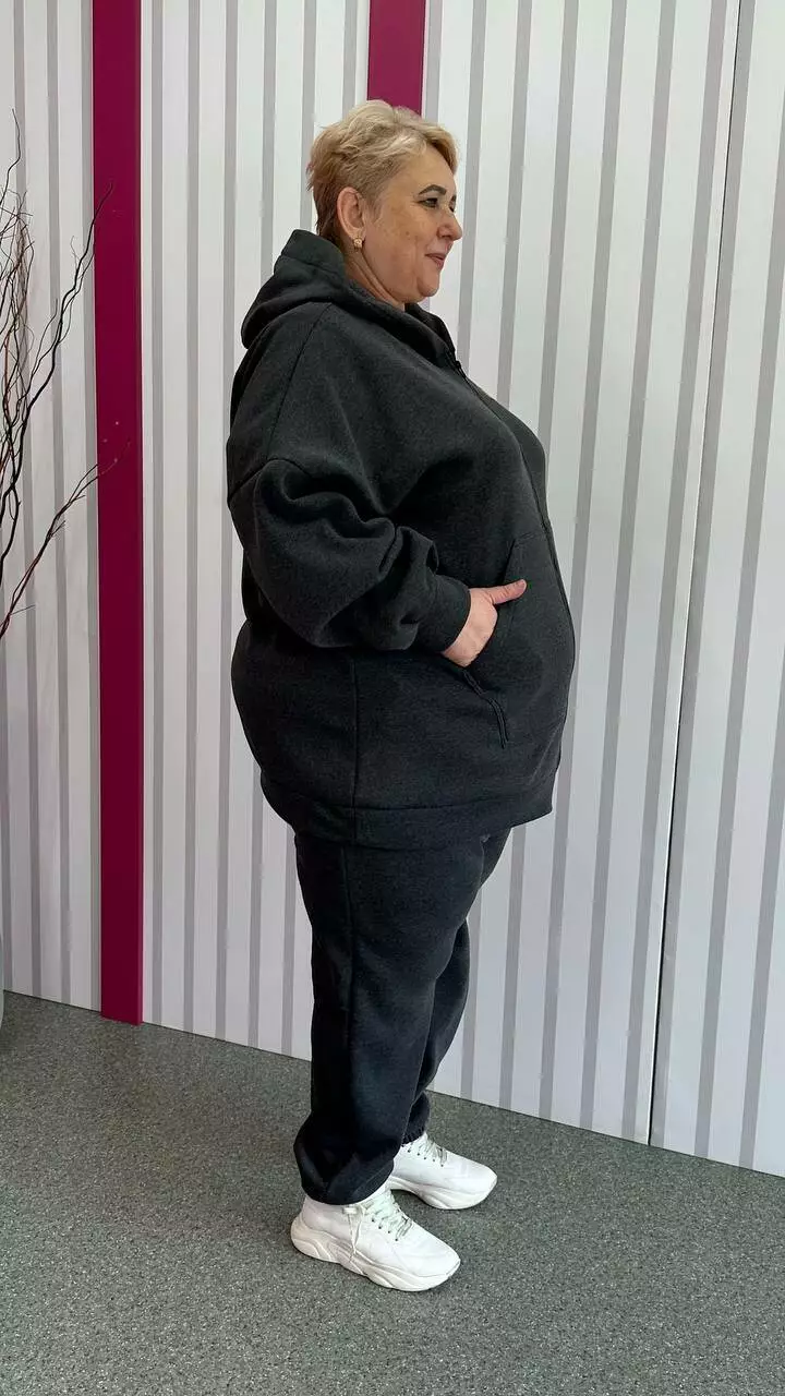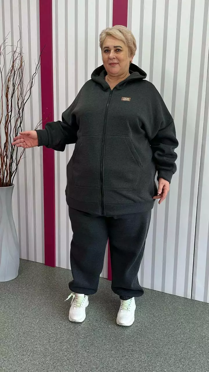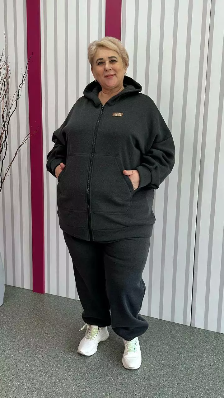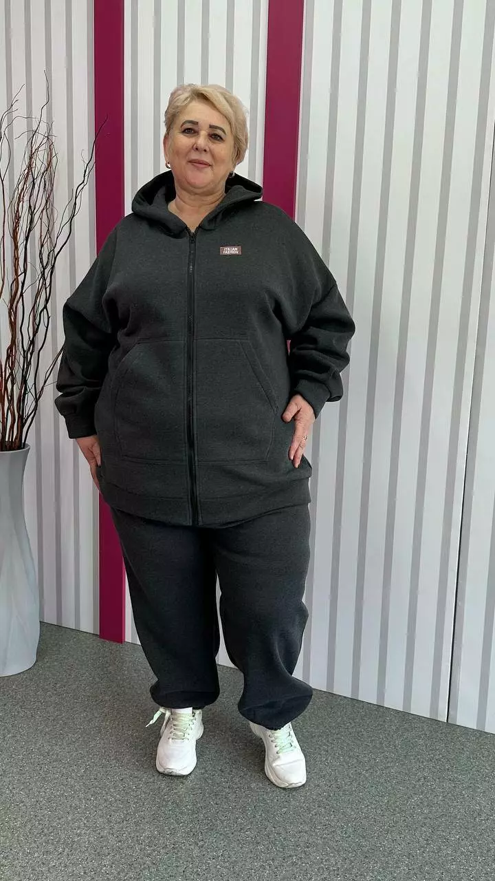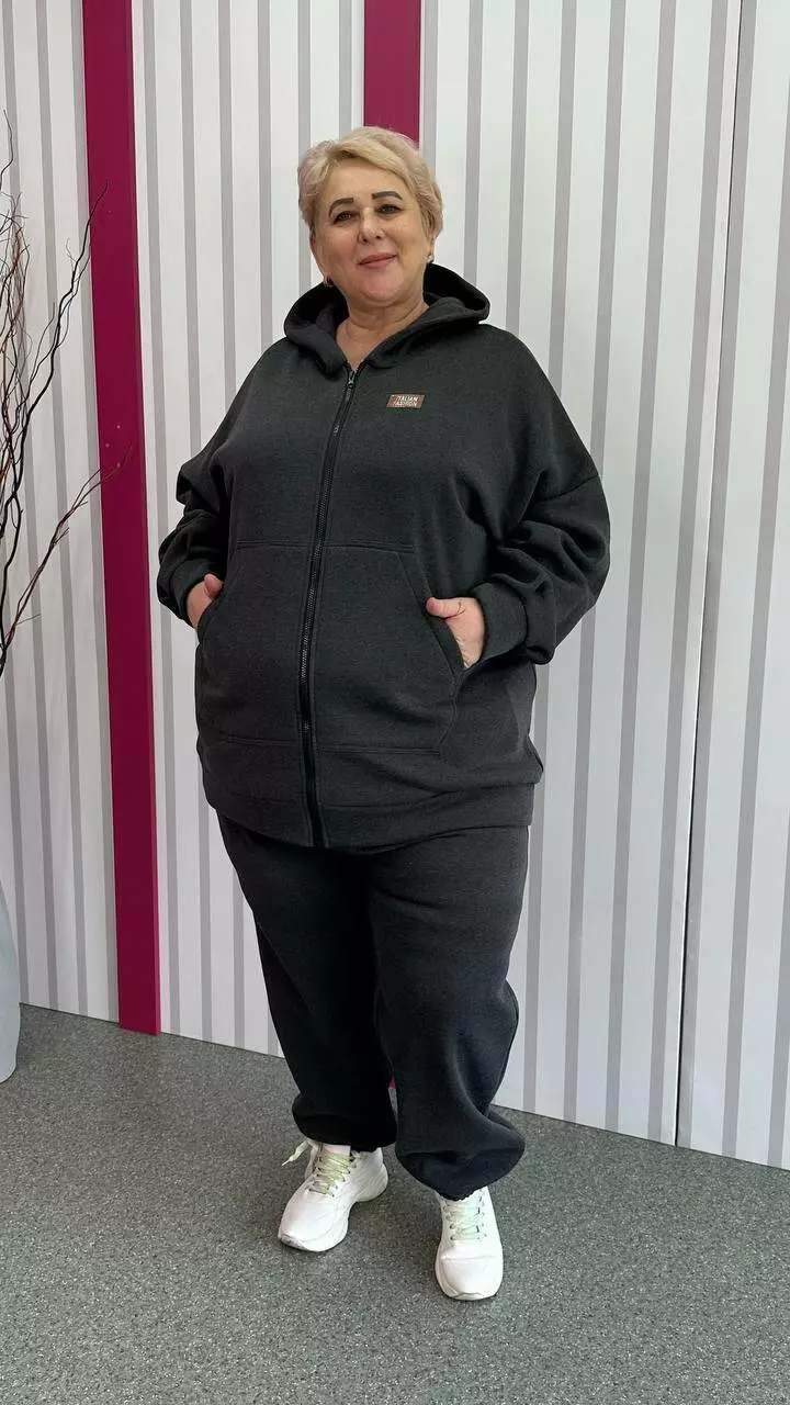 Зручний костюм із тринітки з начосом для фігури з широкими стегнами.