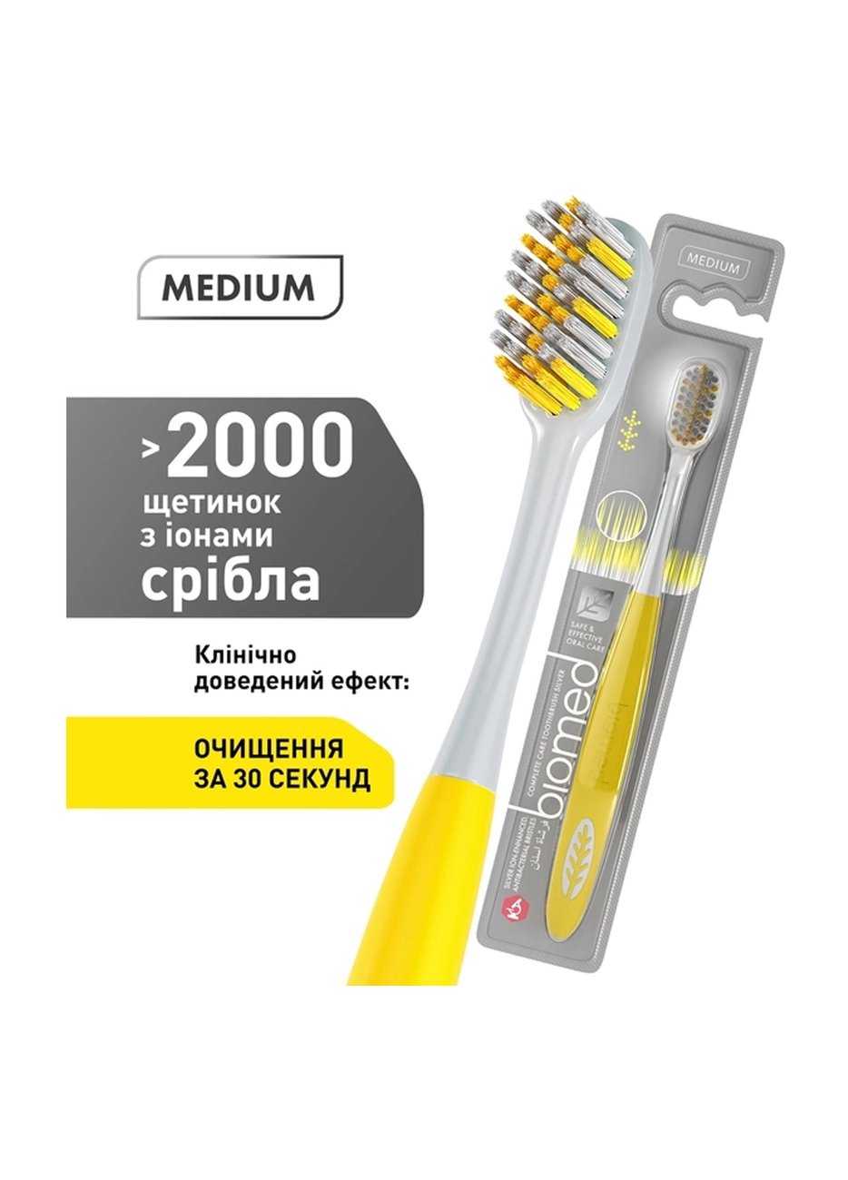 Зубная щетка BioMed Silver с ионами серебра Средняя Желтая 1 шт (7640168930509)