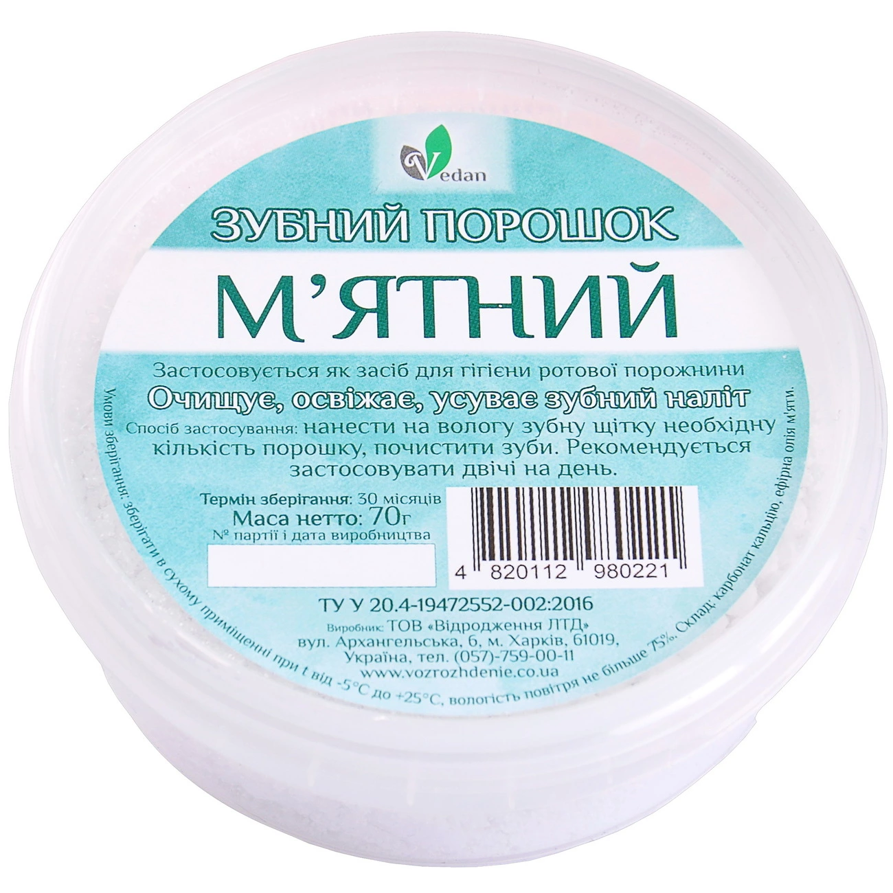 Зубные порошки – это традиционное и эффективное средство для ухода за полостью рта. Натуральный состав и строгое соответствие   ТУ  У  20.4-19472552-002:2016 гарантируют высокое качество и безопасность продукции.