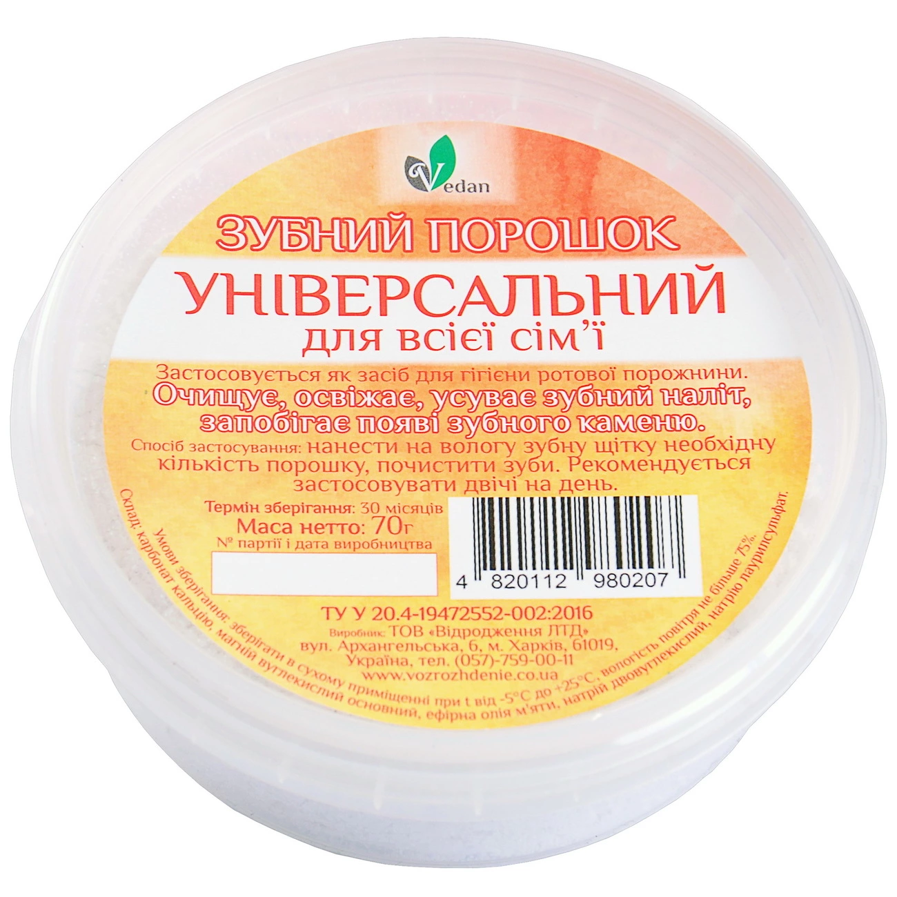 Зубной порошок «Универсальный для всей семьи» / Vedan ТМ