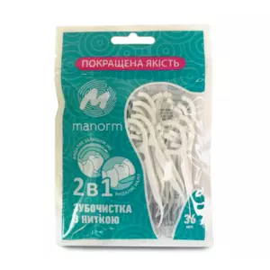 Зубочистка з освіжальною ниткою Manorm — засіб для щоденної гігієни ротової порожнини. Виріб поєднує функціональність зубочистки та нитки, забезпечуючи ефективне очищення міжзубних проміжків. Завдяки анатомічній формі, гнучкій конструкції та м’ятному еліксиру зубочистка легко ковзає, дарує відчуття свіжості та допомагає запобігти скупченню нальоту й залишків їжі в трудно доступних місцях.