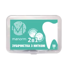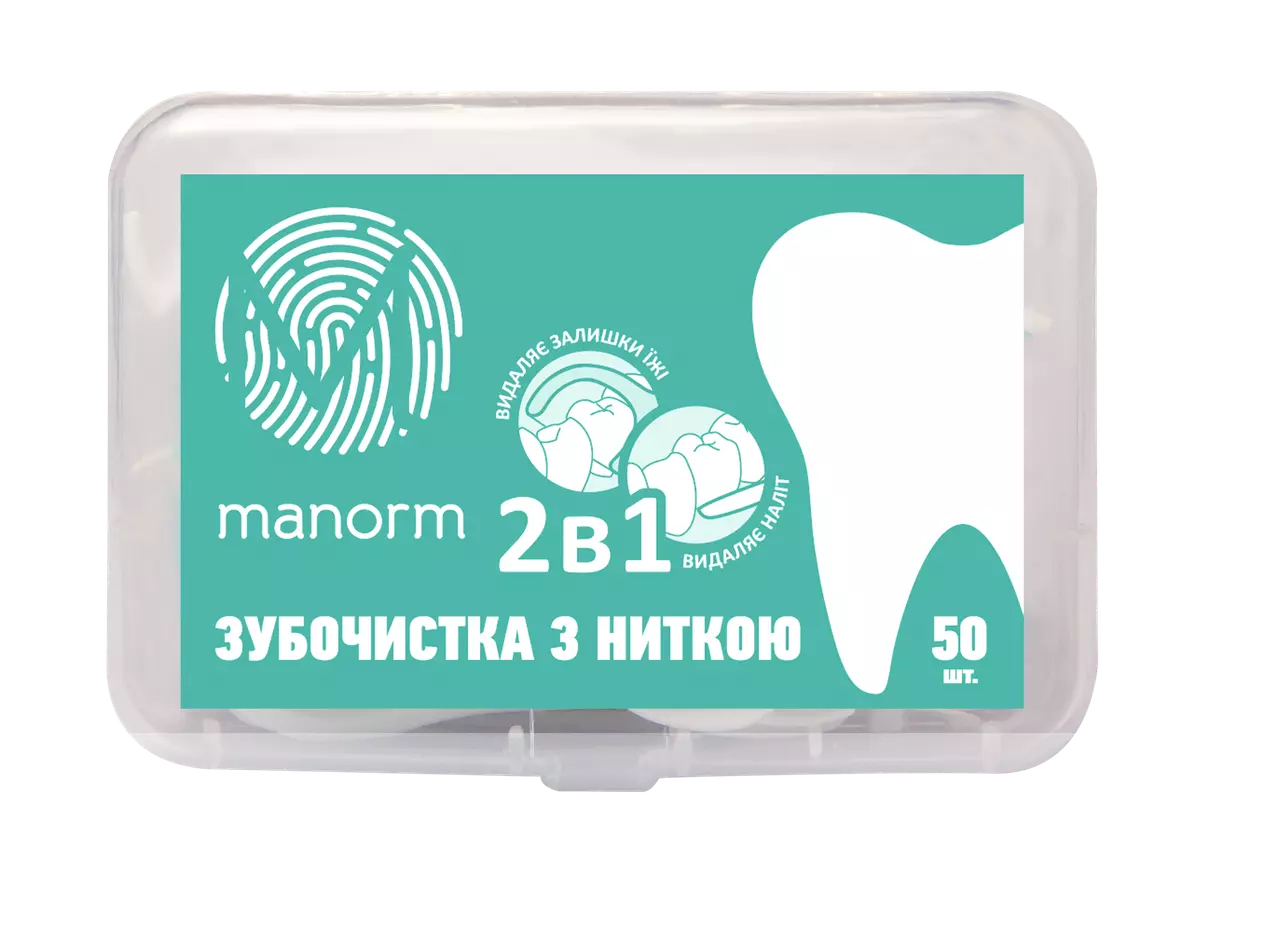 Зубочистка з освіжальною ниткою Manorm — засіб для щоденної гігієни ротової порожнини. Виріб поєднує функціональність зубочистки та нитки, забезпечуючи ефективне очищення міжзубних проміжків. Завдяки анатомічній формі, гнучкій конструкції та м’ятному еліксиру зубочистка легко ковзає, дарує відчуття свіжості та допомагає запобігти скупченню нальоту й залишків їжі в трудно доступних місцях.