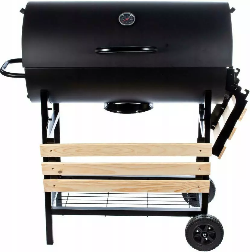 На конструкции установлены два больших колеса, которые значительно облегчают и ускоряют перемещение гриля с места на место.