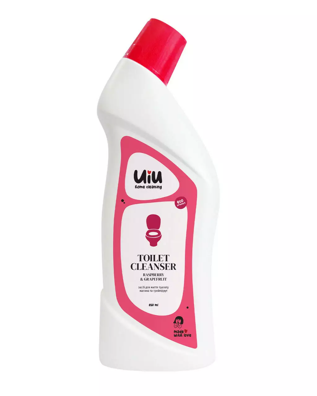 Засіб для миття та очищення туалету UIU призначений для миття кераміки, порцеляни, кахлю, полімерних, скляних та інших неметалевих поверхонь, ефективно видаляє вапняний наліт та інші забруднення, уповільнює їхню появу в подальшому. Без хлору, не має їдкого запаху, надає сяючого блиску.