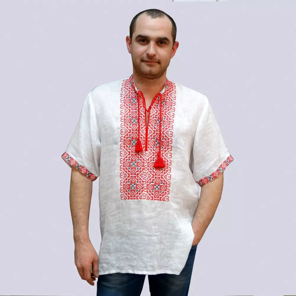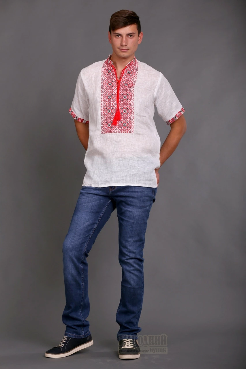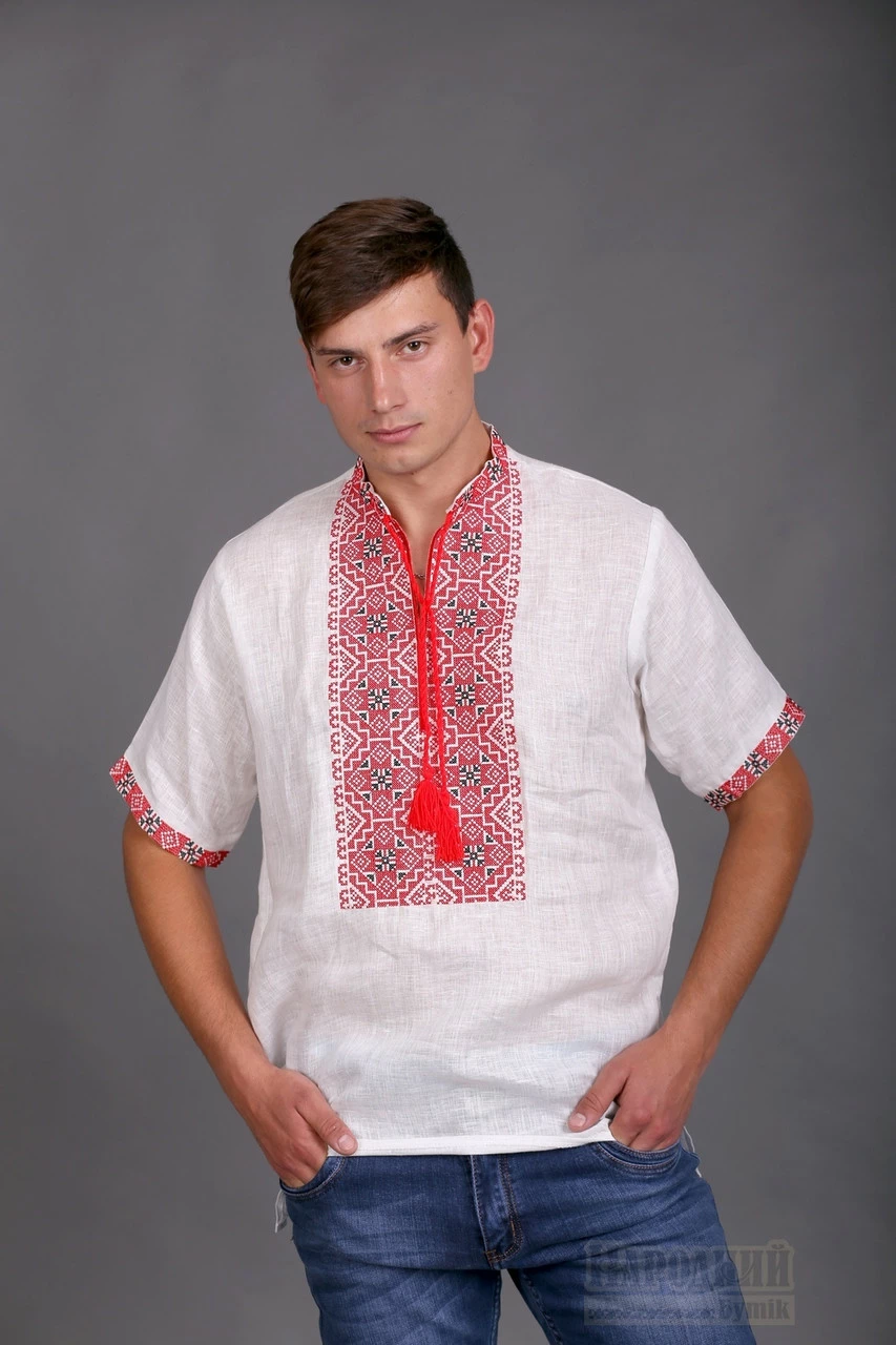 Украинская льняная вышиванка мужская с коротким рукавом