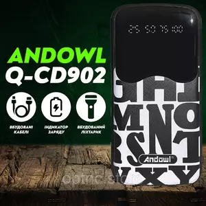 Портативная батарея Andowl Q-CD902 отличается стильным дизайном, высокой емкостью батареи и возможностью подключения нескольких устройств. Универсальная мобильная батарея Andowl Q-CD902 емкостью 30000 mAh совместима со всеми современными смартфонами и планшетами. Также УМБ Andowl Q-CD902  располагает наличием встроенных кабелей microUSB, USB Type C, USB Type A и Lightning с тыльной стороны устройства.