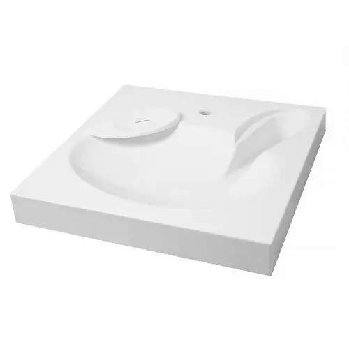 Підвісний умивальник над пральною машиною з литого акрилу посилений декількома шарами полімерних матеріалів і смол, має: