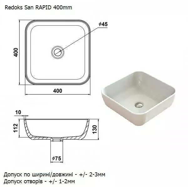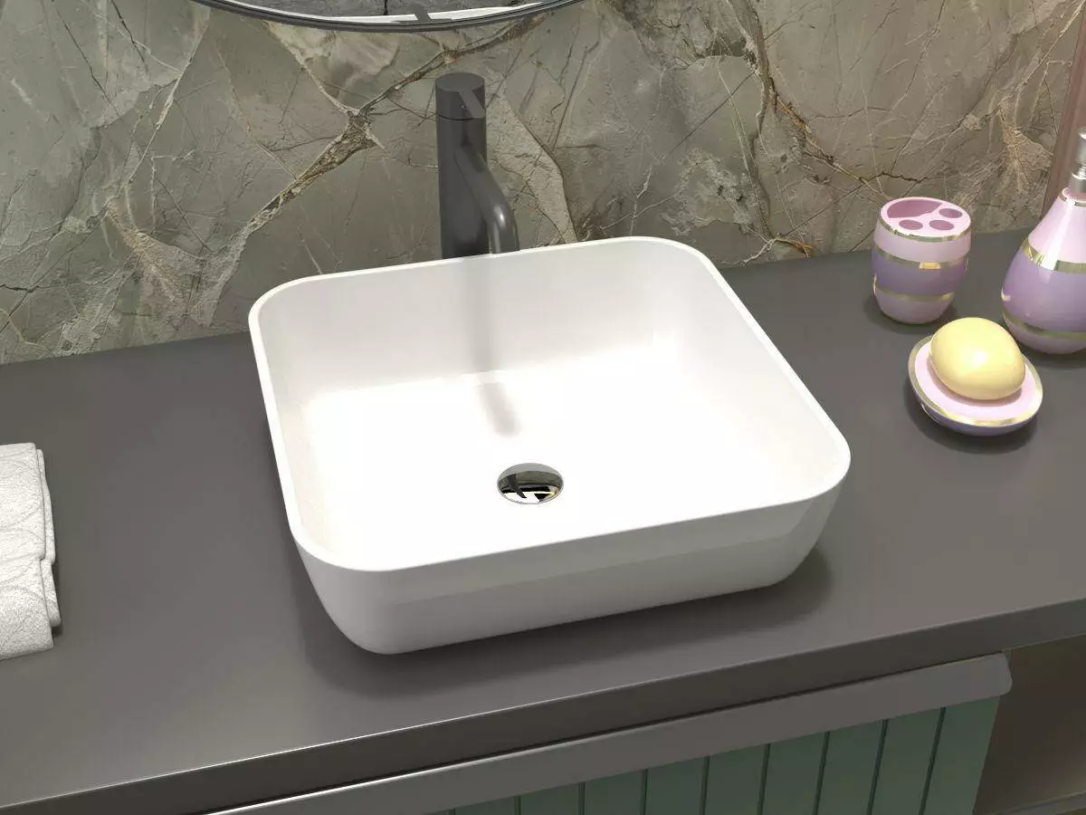 Ідеальний для накладного монтажу на тумбу або стільницю.