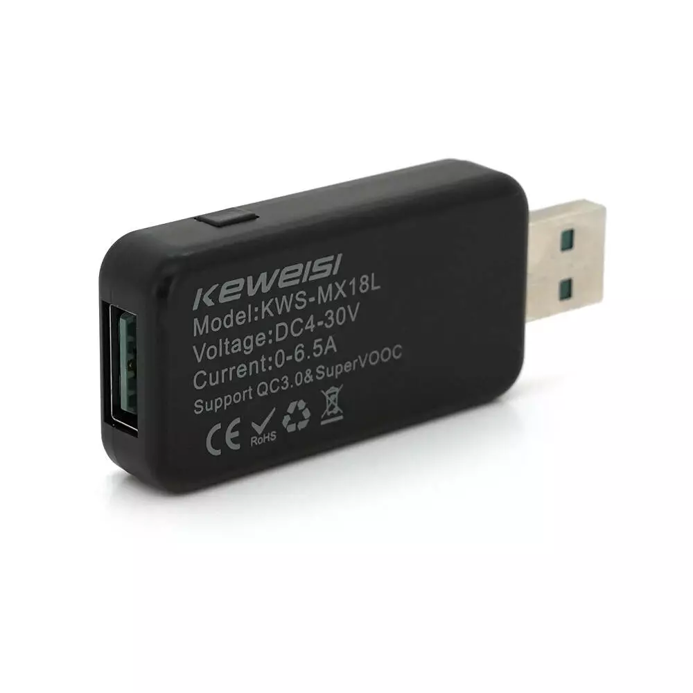 Опис: USB тестер Keweisi KWS-MX18 призначений для вимірювання напруги та струму в діапазоні 4-30V та 0-5A відповідно. Колір чорний.