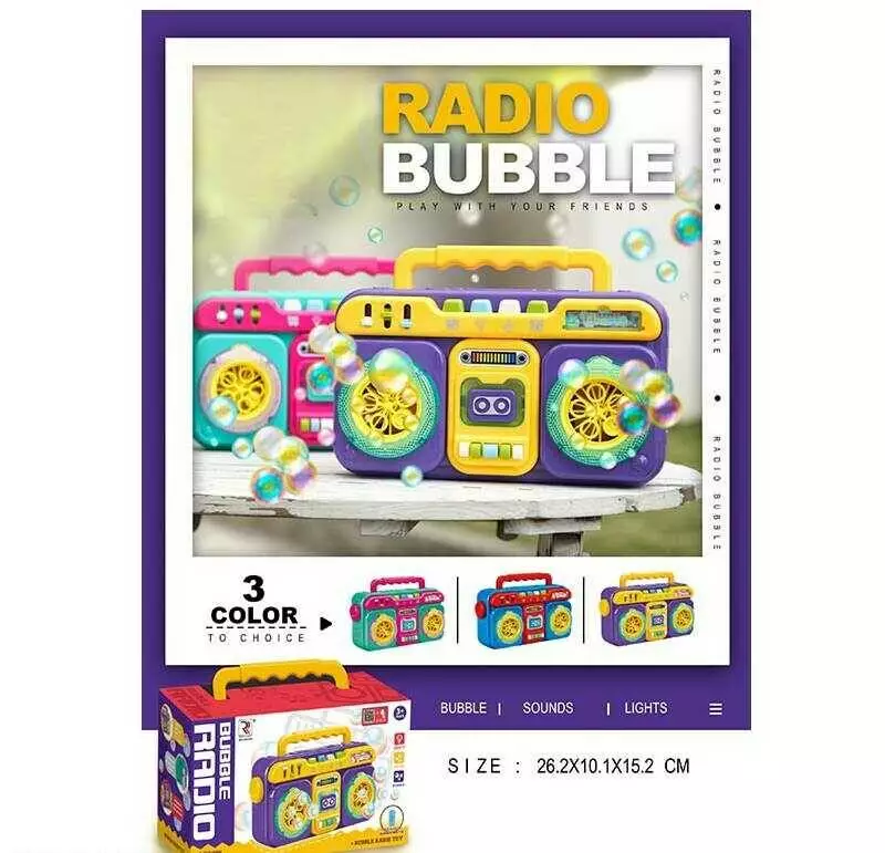 Установка з мильними бульбашками ZR 205 (36/2) “Магнітофон”, мелодії, світло, режими, від батарейок, бульбашки, рухливі елементи, в коробці