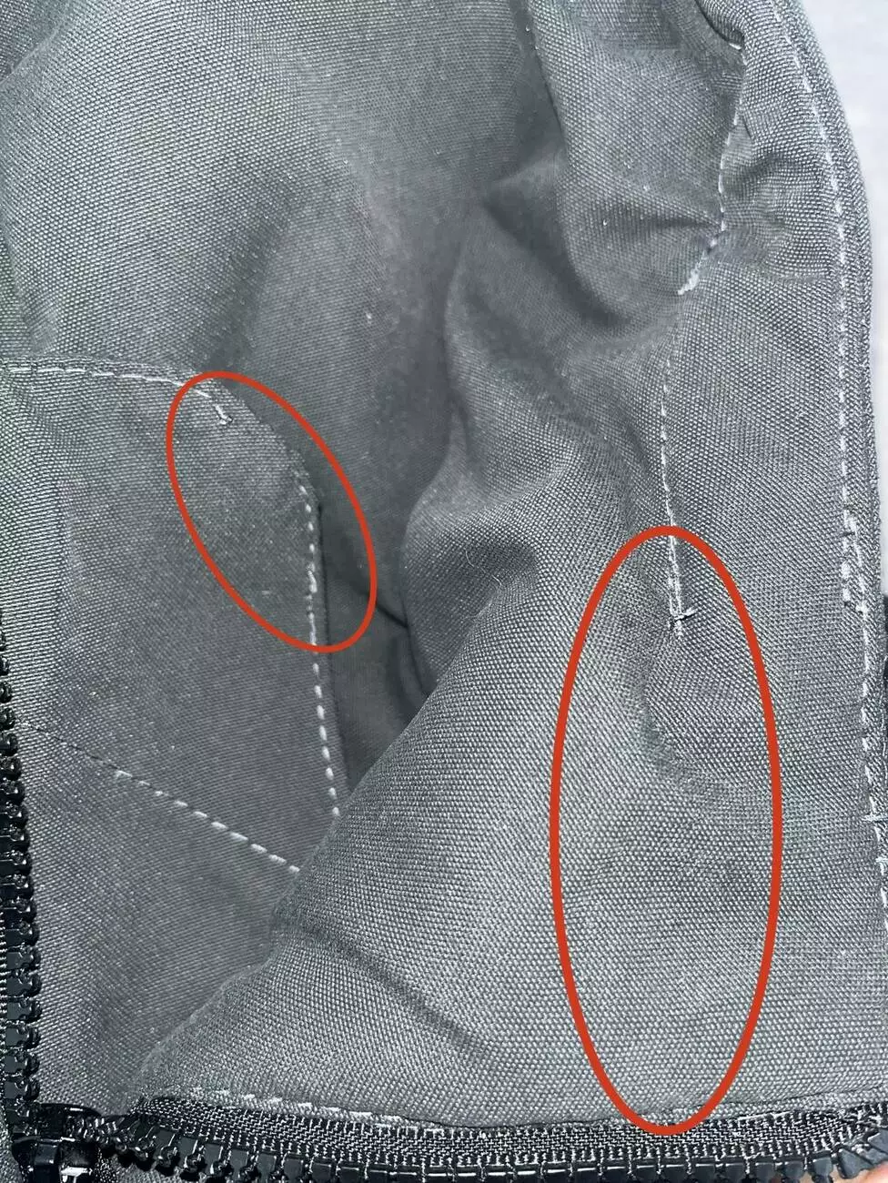 Брак - відсутні нитки на швах