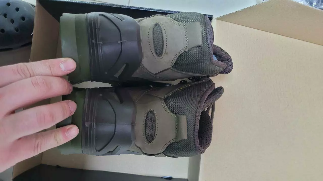 - Матеріал: дихаюча натуральна нубукова шкіра / водовідштовхувальні текстильні вставки з поліаміду Cordura.