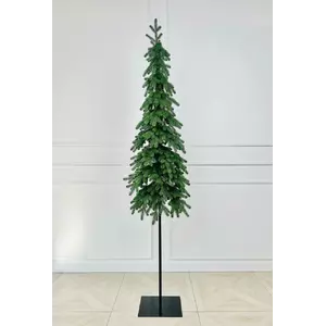 Ее главная особенность - высокая черная металлическая подставка, которая добавляет легкости и создает стильный акцент в пространстве. Узкая, очень стройная форма і литые ветки с реалистичной фактурой хвои придают елке естественный вид, делая ее отличным выбором для небольших помещений.