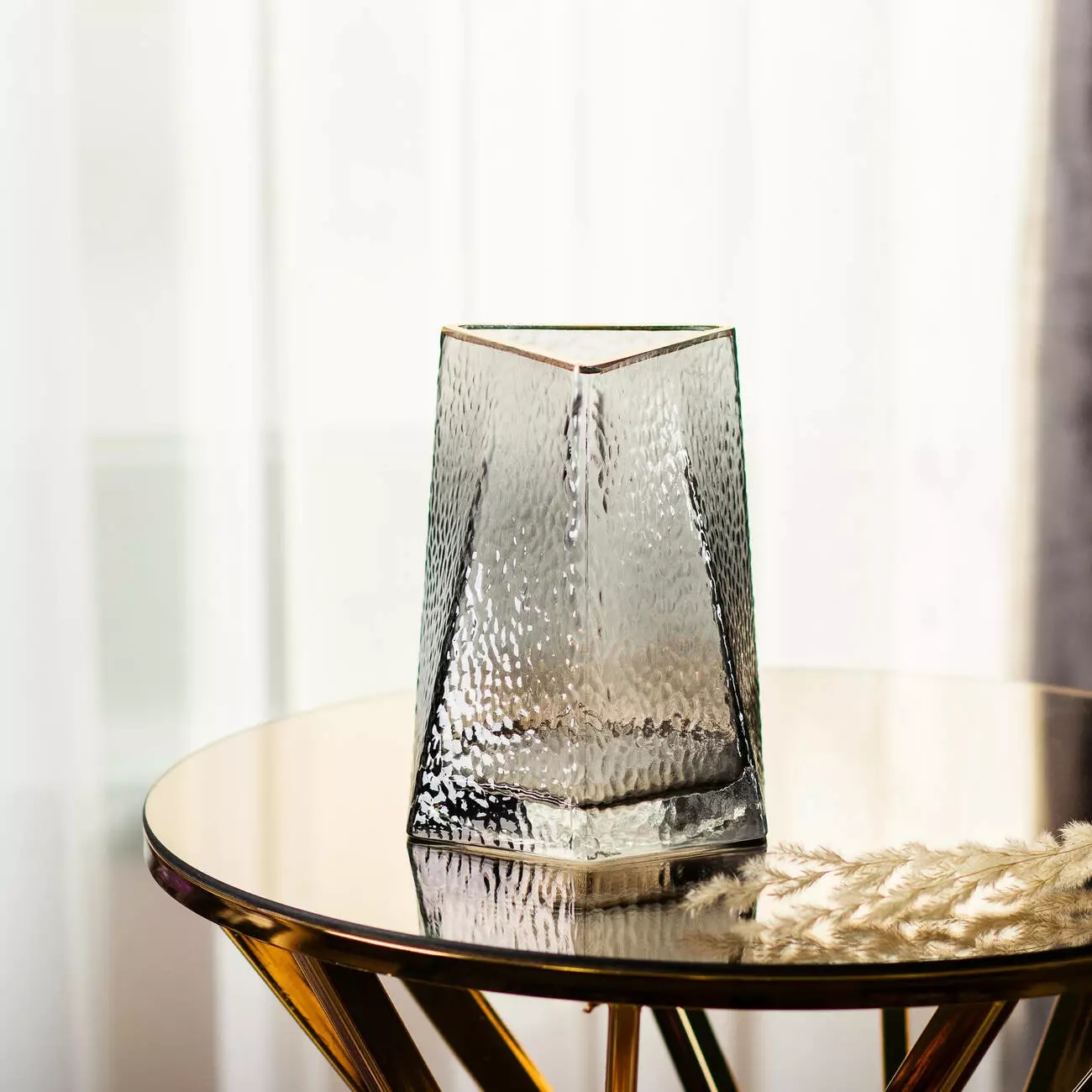 Ваза для квітів Goldland — це вишуканий предмет декору, виконаний у стилі арт-деко, що відображає гармонію розкоші та геометрії. Виготовлена зі скла, вона має висоту 15,5 см, сірий колір із елегантним золотим обідком, що надає вазі благородного та стильного вигляду. Завдяки своєму неповторному дизайну, ця ваза ідеально поєднує в собі класичні елементи арт-деко з сучасними тенденціями, що робить її чудовим акцентом для інтер'єру.