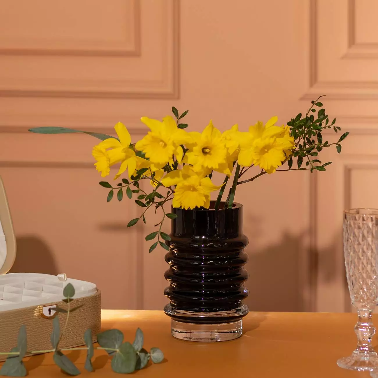 Ваза для квітів скляна у Вінтажному стилі 18 см, чорний