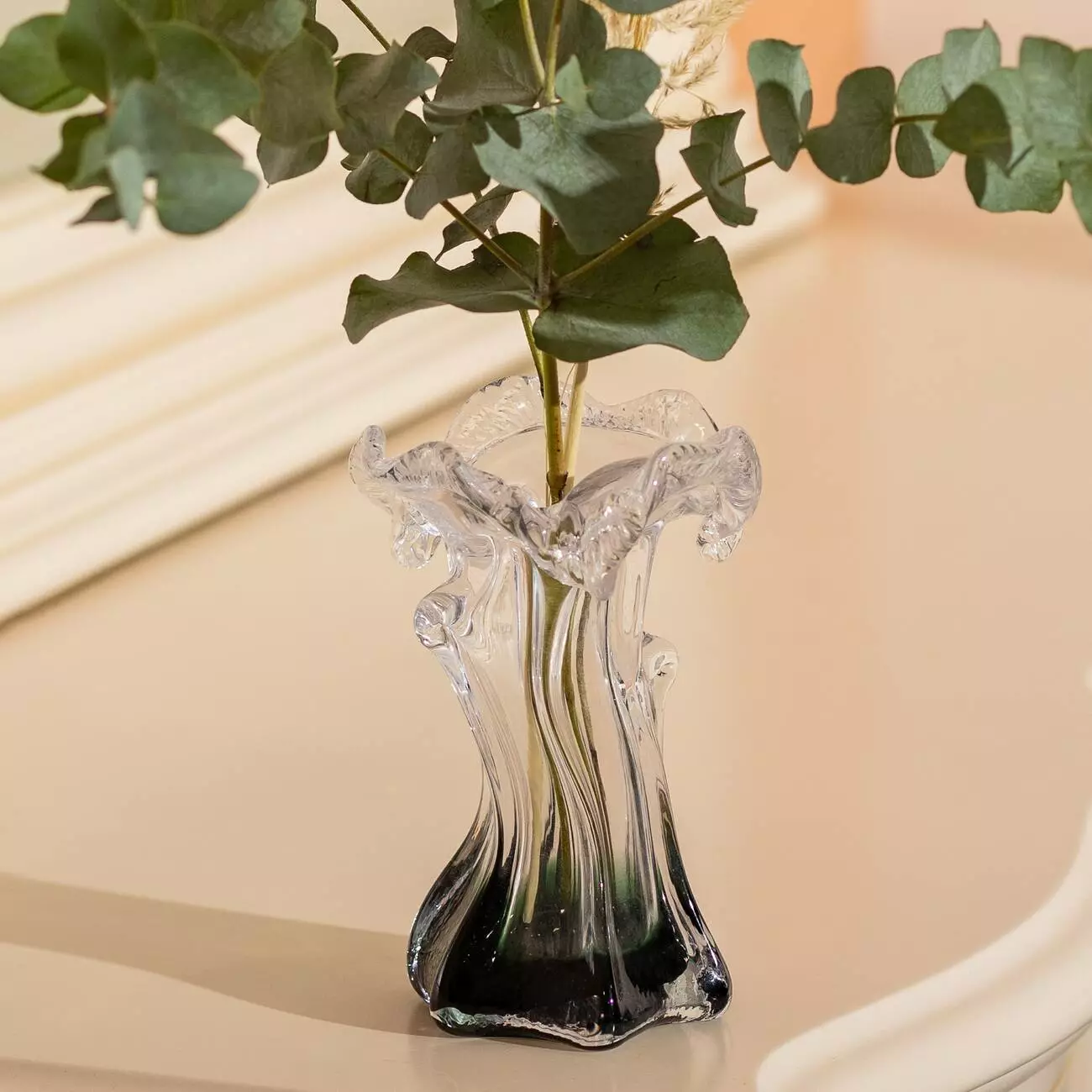 зеленуватого скла робить вазу помітною деталлю інтер’єру. Вона