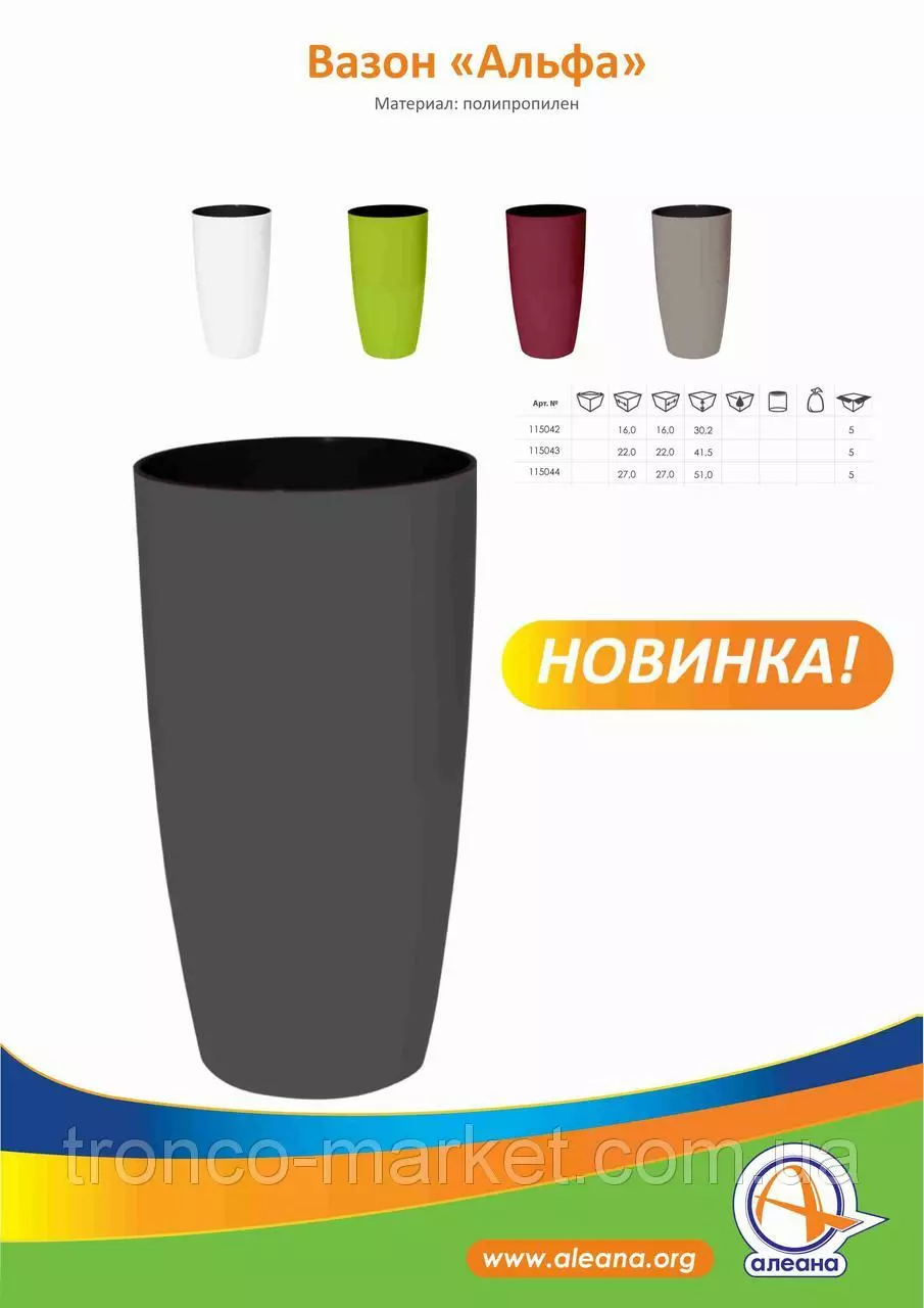 Вазон "Альфа" d22*41,5см., Артикул 115043, параметры изделия :