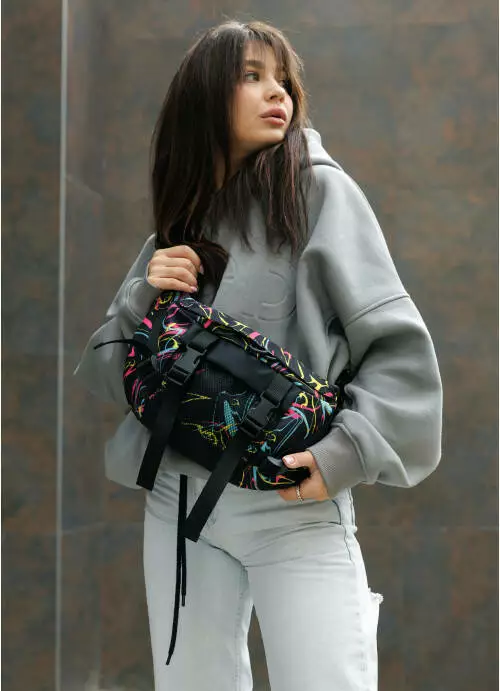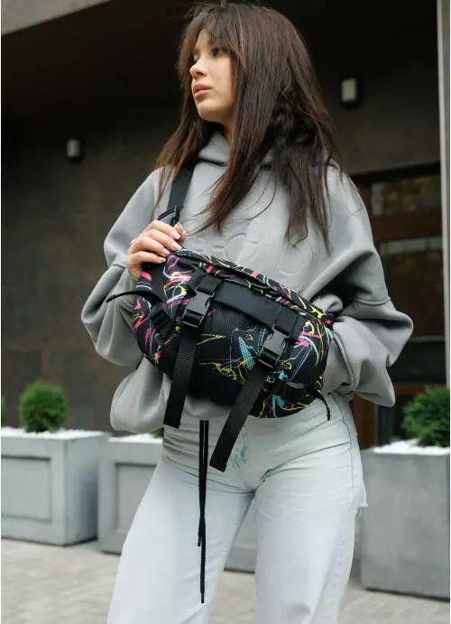 Велика жіноча поясна сумка бананка Sambag DynamicDart принт ABSTRACT