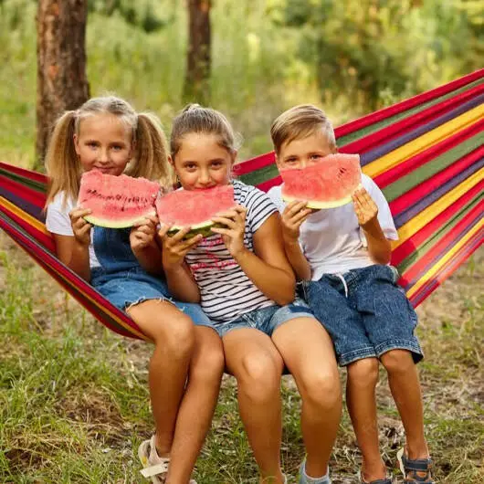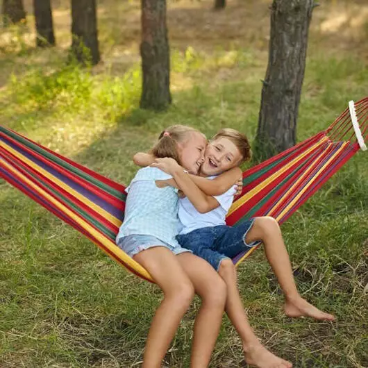 Насолоджуйтеся моментами відпочинку та комфорту в цьому великому садовому гамаку.