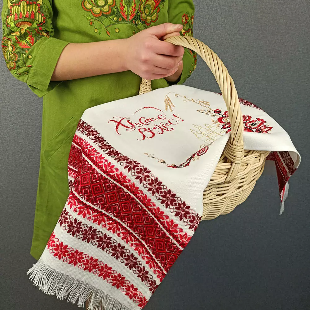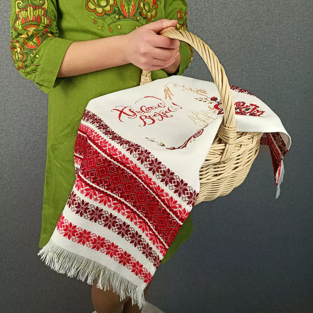 Цей яскравий рушничок буде прикрашати вашу пасхальну корзинку.