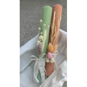 Воскова свічка великодня з декором - це унікальний ручний виріб, який додасть особливу атмосферу і красу вашому святковому столу. Свічка виготовлена з натурального бджолиного воску та має висоту 25 см, що гарантує її тривале горіння.